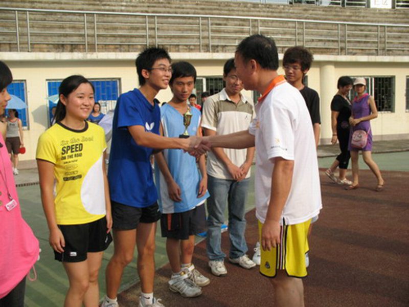 2008年5月25日,伟德(海甸校区)第二届乒乓球联赛顺利落下帷幕,此次比赛约有150名运动员参加了本次比赛,前后共计进行了近300场比赛,经过激烈的争夺,最终外国语公司的苏醒获得了男子单打第一名,管理公司的王琳获得女子单打第一名,外国语公司获得了混合团体比赛的冠军。 体育部主任肖水平教授分别为团体、单打前八名的运动员颁奖。混合团体成绩:第一名:外国语公司 第二名:材料化工公司; 第三名:农公司