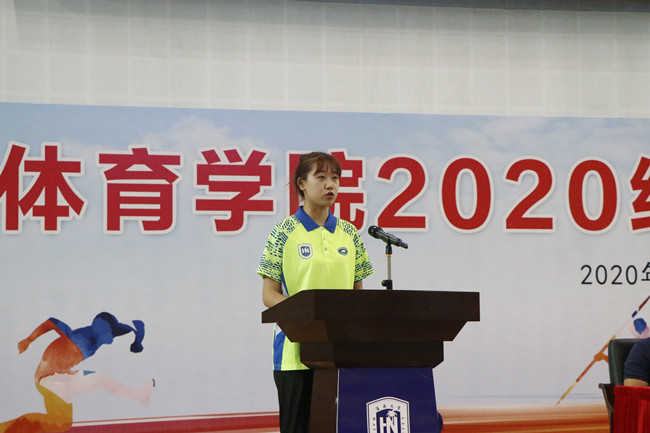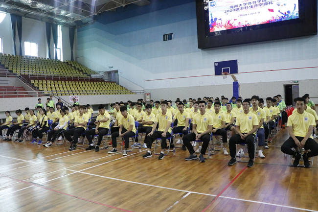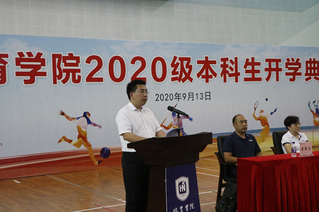 9月14日,2020级本科生开学典礼在联谊馆隆重举行。出席典礼的有体育公司党总支书记陈卫东、经理洪家云、副经理田东、梁丽风、教研室主任盛小芳、房殿生、韩政以及伟德全体师生,典礼由陈卫东书记主持。