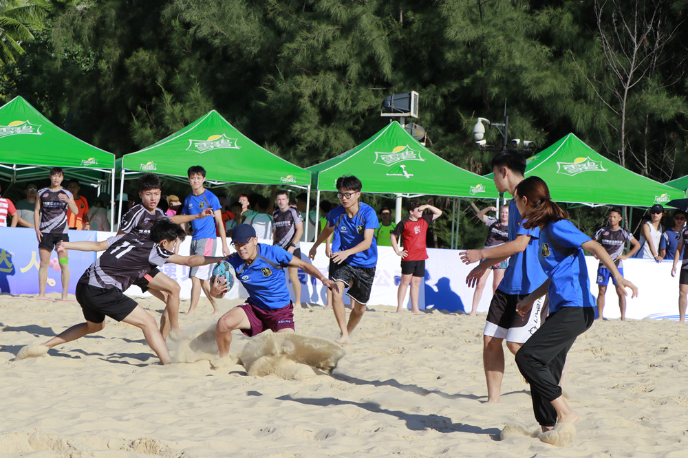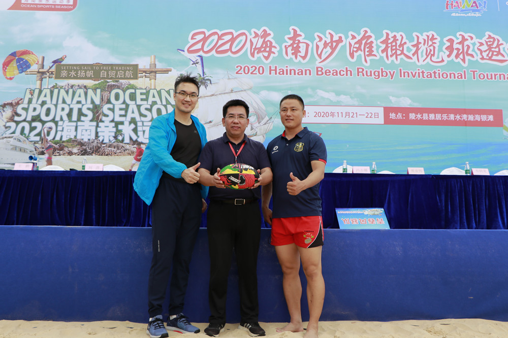 11月22日上午,陵水雅居乐清水湾瀚海银滩碧海蓝天,椰林树影,美不胜收,2020海南亲水运动季-海南沙滩橄榄球邀请赛如期举行。伟德体育公司党总支书记陈卫东,教练孙吉成,学工办主任许达潭率队参赛!