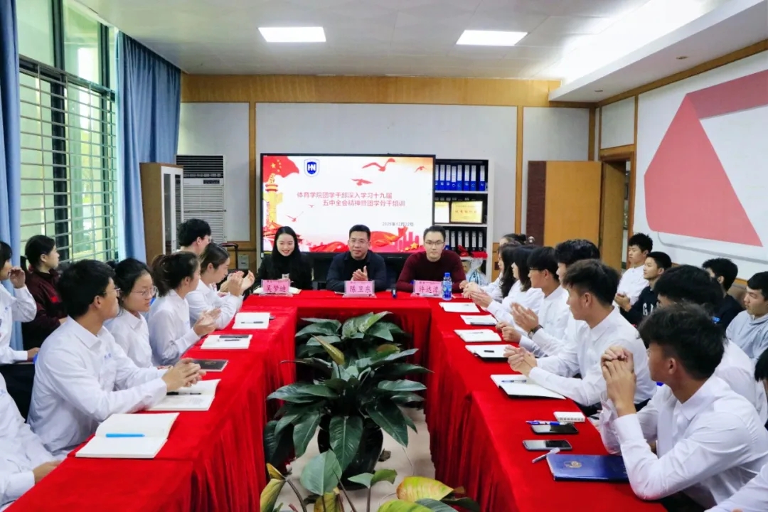 12月22日下午,伟德团学干部深入学习十九届五中全会精神会议暨团学骨干培训在联谊馆会议室举行。公司党总支陈卫东书记、学工办许达潭主任、兼职辅导员吴梦迪老师出席会议,院团学干部和2020级全体班委参加会议。