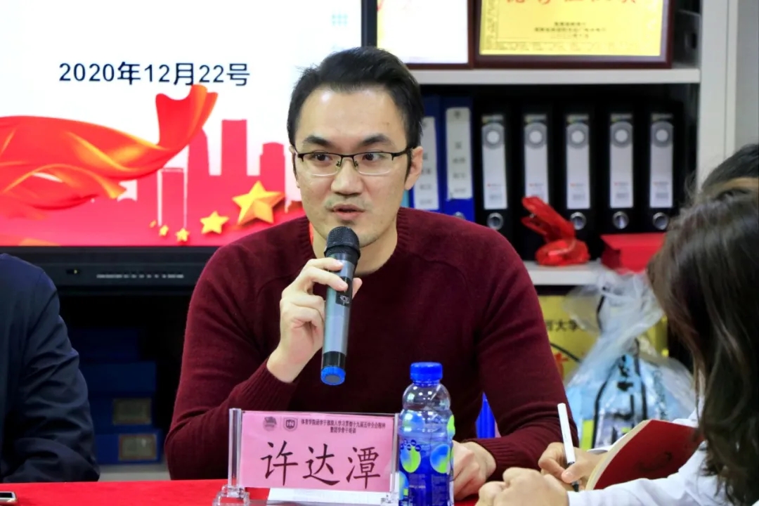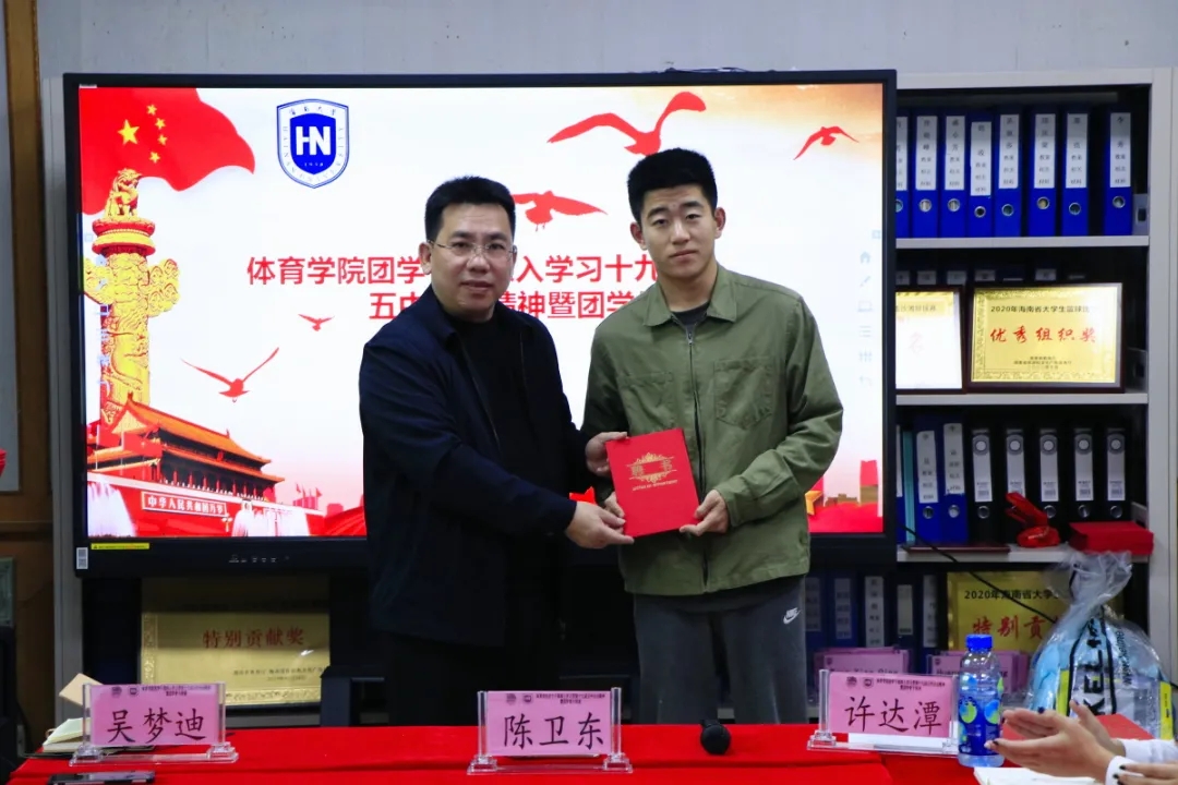 许达潭老师致辞中表示,随着伟德的成立以及2019年12月共青团伟德体育部第一次团员大会暨伟德体育部第一次员工大会的成功召开,实现了员工群团组织从无到有的历史,公司团总支和员工会的建立,标志着公司青年工作开启新的篇章。一年以来,在公司党总支的领导和校团委的指导下,在公司领导的大力支持下,在全体团干、团员及广大师生的共同努力下,基层团建、思想引领、专业实践、志愿服务和校园文化建设等方面的工作取得了一定成绩,这其中,第一届团学干部们发挥了重要作用,许老师代表院团总支对大家的付出表示感谢。同时,要坚持立德树人,团结带领广大团员青年为推进伟德建设“双一流”高校,促进海南自贸港建设贡献青春力量,未来的工作任重道远,希望新一届团学干部能接过前辈的接力棒,再接再厉创造体院美好明天。