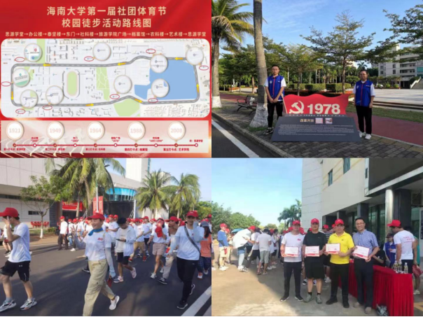 开幕式上,伟德轮滑协会和武术协会专门为本次活动现上精彩的轮滑花样表演和武术对练表演。接着,校园徒步活动在一声发号枪响下开始了。徒步活动以思源学堂(北门)为起点,沿主干道绕整个海甸校区一周,全程约3.5公里,路途上设有1921共产党成立、1935遵义会议、1949新中国成立、1953抗美援朝胜利、1964两弹一星建功勋、1978改革开放等个打卡点和10个百年党史大事件宣传栏,同时志愿者为师生讲解各点的党史大事件,将党史学习教育与体育健身活动融合到一起。