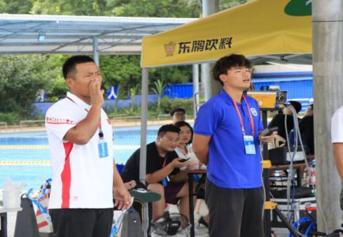 运动员的检录工作在裁判员的组织下有序进行。随着裁判一声令下,比赛正式开始。参赛运动员们燃烧起了热烈的竞技激情,五十米长的泳池瞬间被激荡起无数的水花。运动员们奋力拼搏,动作矫健有力。下午的团体接力比赛更是高潮不断,运动员们排兵布阵,团结一致,全力以赴,为我们带来了一场无与伦比的视觉盛宴。