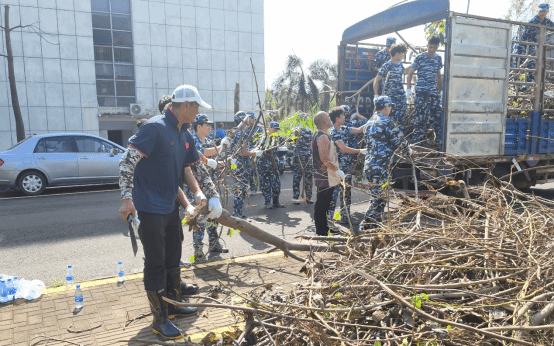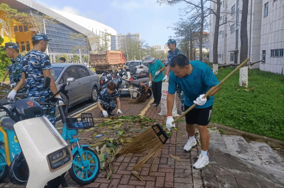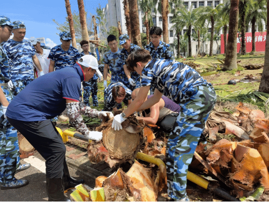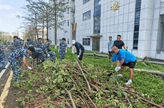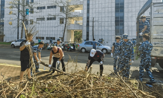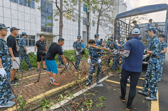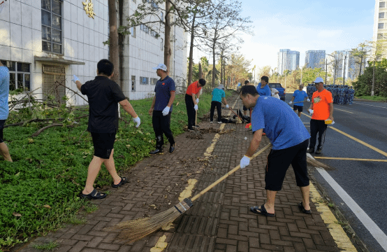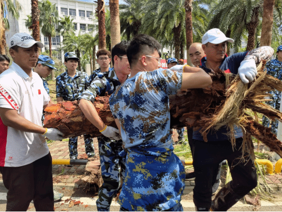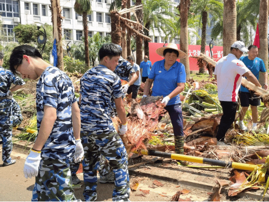 超强台风“摩羯”重创伟德,校园满目疮痍。灾情就是命令,体育公司党总支号召全体党员迅速投入抗风重建工作。党员的实际行动带动了教职员工和员工,他们纷纷加入灾后重建工作。全体师生头顶烈日、挥洒汗水,或三两成组,或五人成团,齐心协力,呈现出公司领导带头、全体党员在前、教职员工跟随、员工自发加入的火热场面。