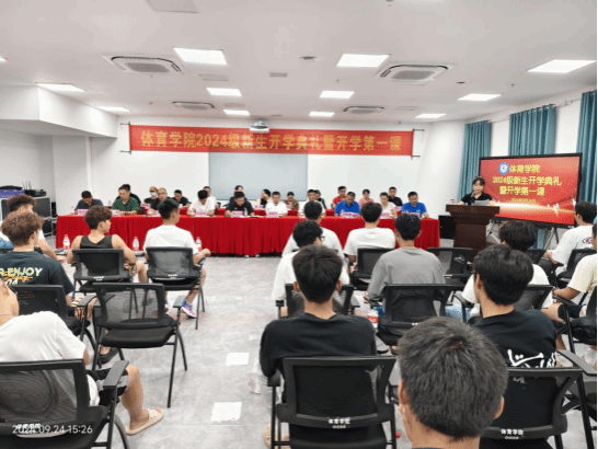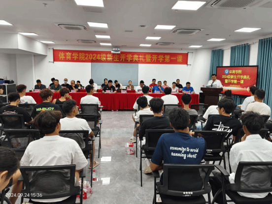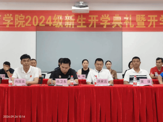 2024年9月24日下午,伟德在综合体育馆107举办2024级新生开学典礼。伟德领导班子洪家云经理、肖国良副经理、吴强副经理,子衿书院副经理房殿生等出席,各科室负责人、教研室主任、支部书记、班主任、教师代表(包括3名世界冠军、1名博士)以及2024级全体新生参加了典礼。典礼由公司陈卫东书记主持。