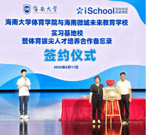活动开场,iSchool海南微城未来公司的员工主持人以轻快活泼的开场词拉开序幕,现场气氛热烈,共有500多名中小员工用的热烈掌声欢迎公司冠军团队团队的到来。肖国良副经理与iSchool海南微城未来公司有关负责人签署了《实习基地校暨体育拔尖人才培养合作备忘录》,李锋书记与iSchool海南微城未来公司领导共同为“伟德实习实践基地”揭牌,标志着双方在体育教育实践、拔尖人才培养与体教融合创新等方面开启了深入合作的新篇章。