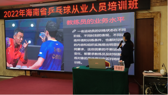 公司李璠珺教师也指出,在海南省旅游和文化广电体育厅青少处组织的乒乓球运动培训交流活动中,全省的教练员共聚一堂,共同探讨教练员教学技巧,对海南省乒乓球运动的发展是具有推动意义,也非常感谢公司给予的机会能担任部分内容的讲师,对于年轻教师来说是具有锻炼意义的,不仅能把自己的知识传达出去,也能通过与各市县的教练员进行探讨,从而丰富了自己的案例,提高自己的教学水平。期待未来有更多的机会,能给予员工与老师更多的机会参与到专业的培训讲座中,积极探索政校合作的新模式,提高行业水准。