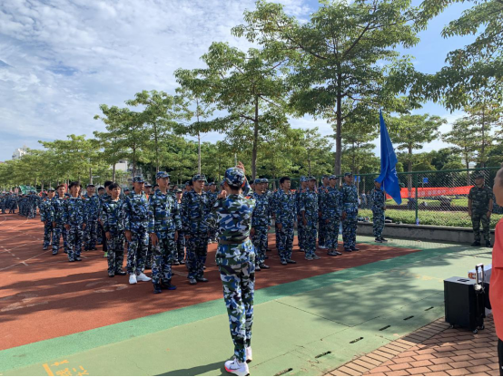 洪家云经理致辞中强调军训作为开学第一课要给予充分重视,充分发扬不怕苦、不怕难的精神品质,磨炼不惧困难的意志,更好更快地融入集体。洪经理还鼓励2021级新生要克服困难,尽快适应新环境、新生活,学习军人优良品质和作风,并将良好的精神风貌融入到今后的学习、生活中,不断成长,不断进步!