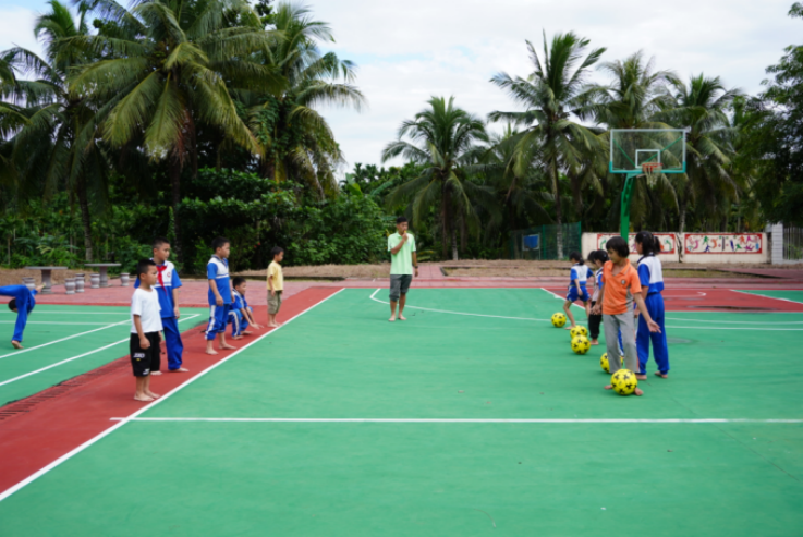 第一 活动前期准备中,青春援乡体育文化队与番文希望小学相关负责人就小员工体育项目教学进行沟通,确定好教学时间、教学内容、教学场地等,并提前准备相关安全防护用品。青春援乡体育文化队支教同学根据自己的专长设计教学内容,教学项目包括足球、羽毛球、篮球和乒乓球。
