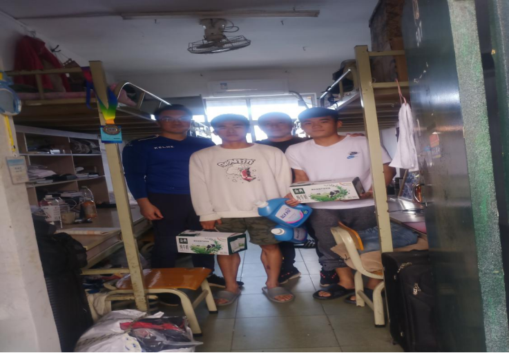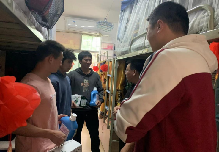 为促进员工身心健康成长,解决困难生面临的实际困难,切实开展“六帮”专项行动。3月1日中午12:00,在体育公司党总支书记陈卫东的带领下,学工办主任许达谭、班主任张旭辉、孙吉成、高子岩、赵帅、黄浩、陈先俊和辅导员谢淑婷深入员工宿舍开展困难生慰问活动,为16名困难生送上春日关怀礼包。